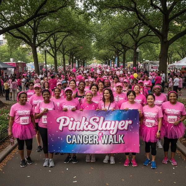 Every step at the PinkSlayer Cancer Walk tells a story of survival. Your participation is life-changing, whether it means providing a wig that restores confidence, a compression garment to manage swelling, breast prosthetics, or essential ostomy pouches and supplies. Form a team for free today! While fundraising isn't mandatory, every dollar helps us bring medical supplies and health fairs directly to our community. The top team earns a trophy and featured recognition at our event, on our website, and on social media!! Ready to lead? Start your team and let’s walk!